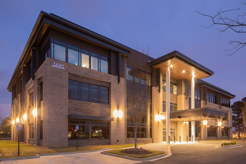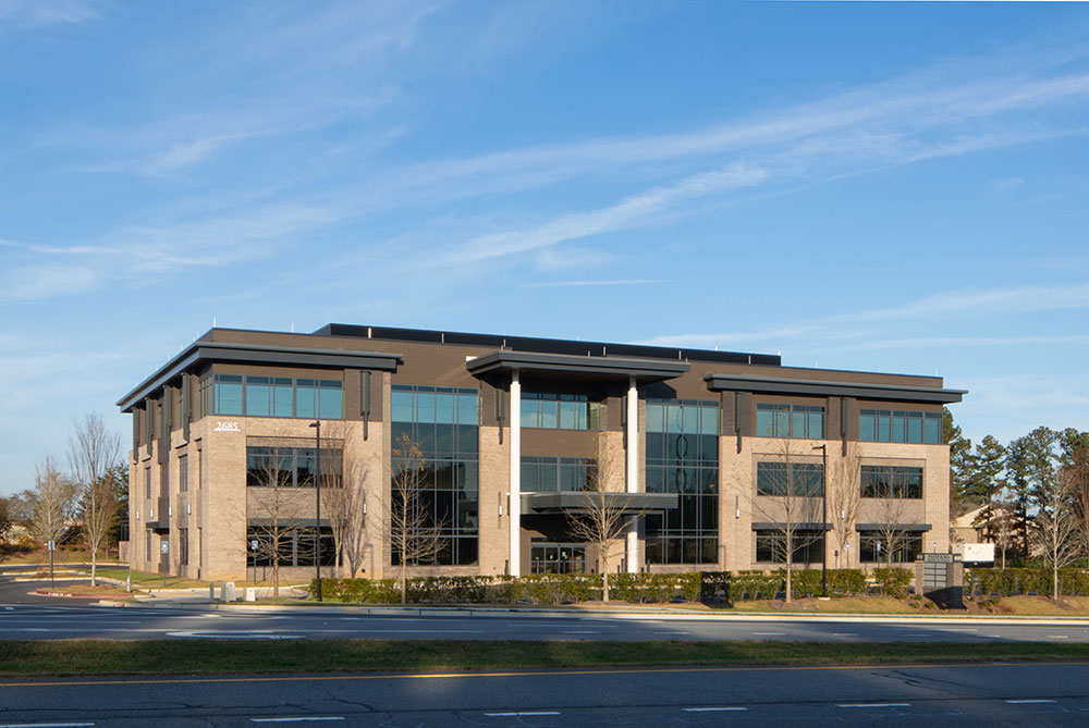 LDDBlueline™ was selected to provide full architectural and interior design services for this medical office building that consists of steel frame construction with brick and fiber-cement panels with aluminum and glass curtain wall and storefront window systems. The design for the shell building includes all public spaces, fire egress stairs, elevators, and support spaces. Interior tenant fit-out design includes suites for North Atlanta Vascular Care, North Atlanta Women’s Care and North Atlanta Vein Center. Design goals were set to maximize the tenant usable area while providing a modern design that incorporates canopies and sun devices. The front entrance covered drop off canopy is cantilevered from the building to make dropping off and picking up patients a more streamlined process.
