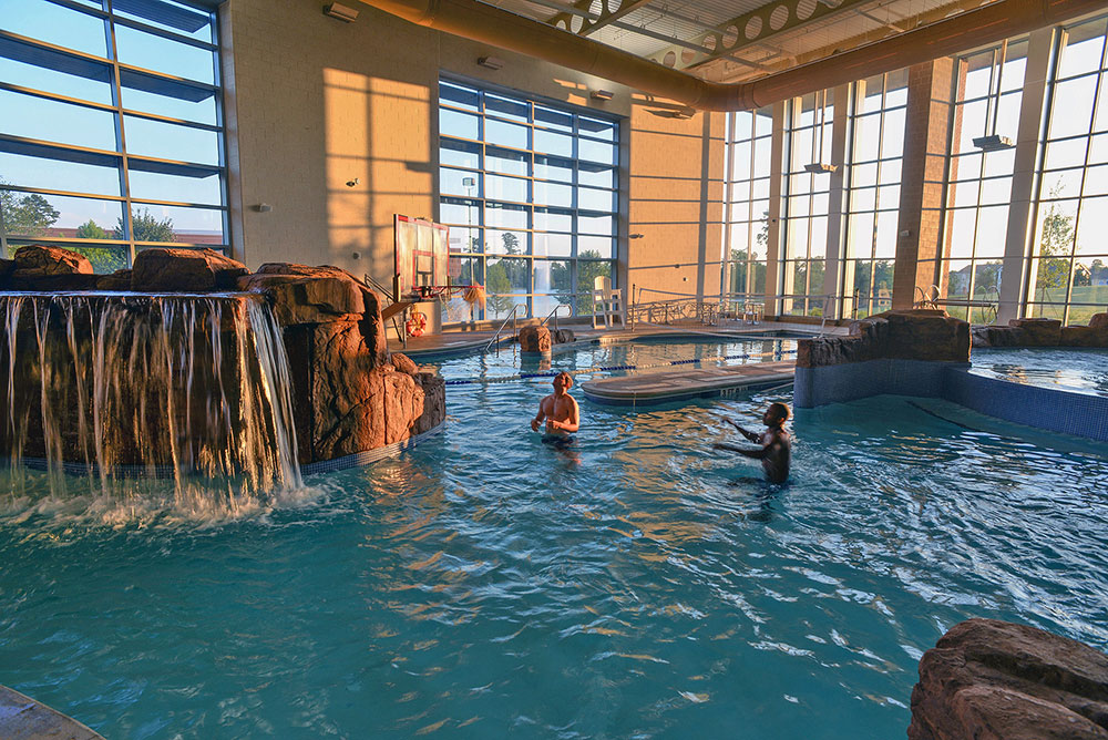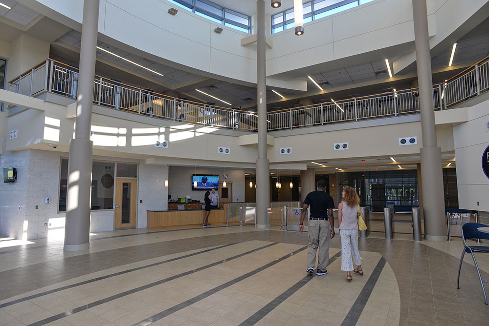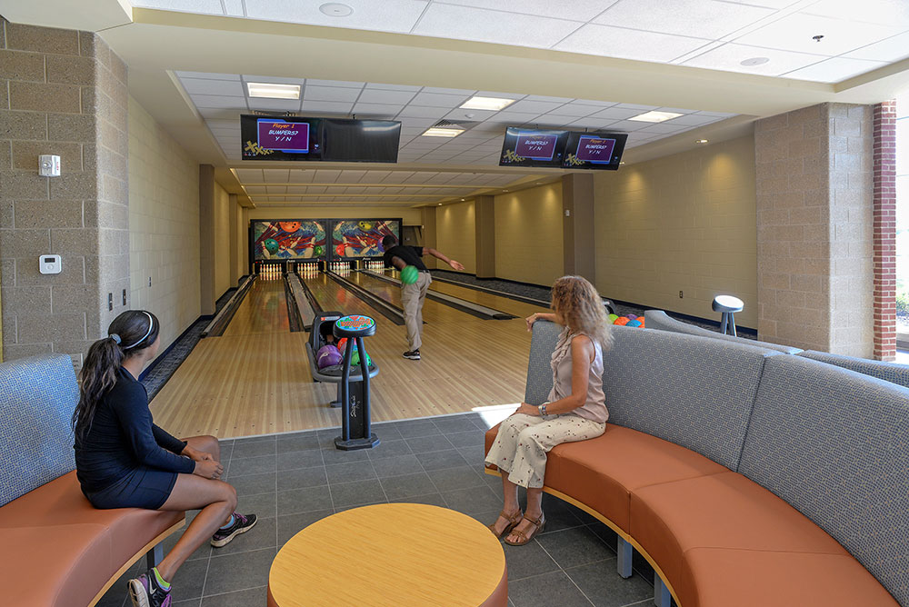 As the first building constructed on the northern part of the Macon campus, the recreation and wellness center had to be a focal point for the entire campus, drawing students and staff together with its strategic location between the academic and housing areas. LDDBlueline™ partnered with Flynn Finderup Architects to provide a signature building that includes a two-court gymnasium with elevated running track, fitness center with weights and cardio, racquetball courts, bowling alley, indoor recreational pool, interactive gaming area, student gathering areas, and a grab & go food venue.
