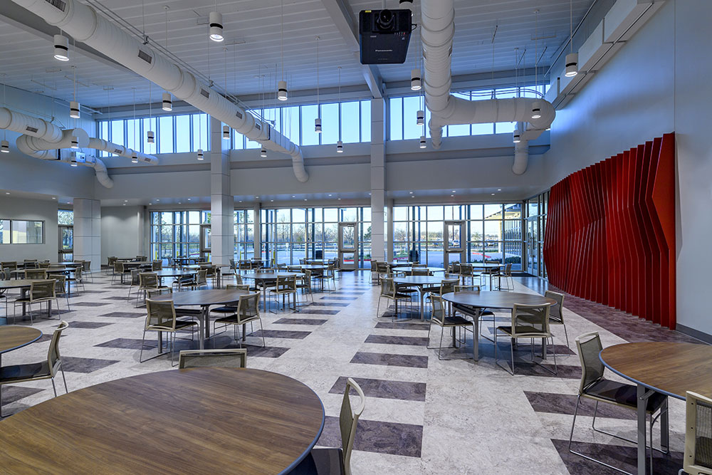 The multi-disciplinary design team drew upon the plant’s industrial aesthetic for inspiration, utilizing structural and mechanical elements in a sculptural fashion. The cafeteria and the state-of-the-art fitness center serve a total population of almost one thousand workers on the site. After Hurricane Harvey destroyed the existing Change House and Fitness Centers, these projects were added to the scope on a “fast track” basis, more than doubling the project size.